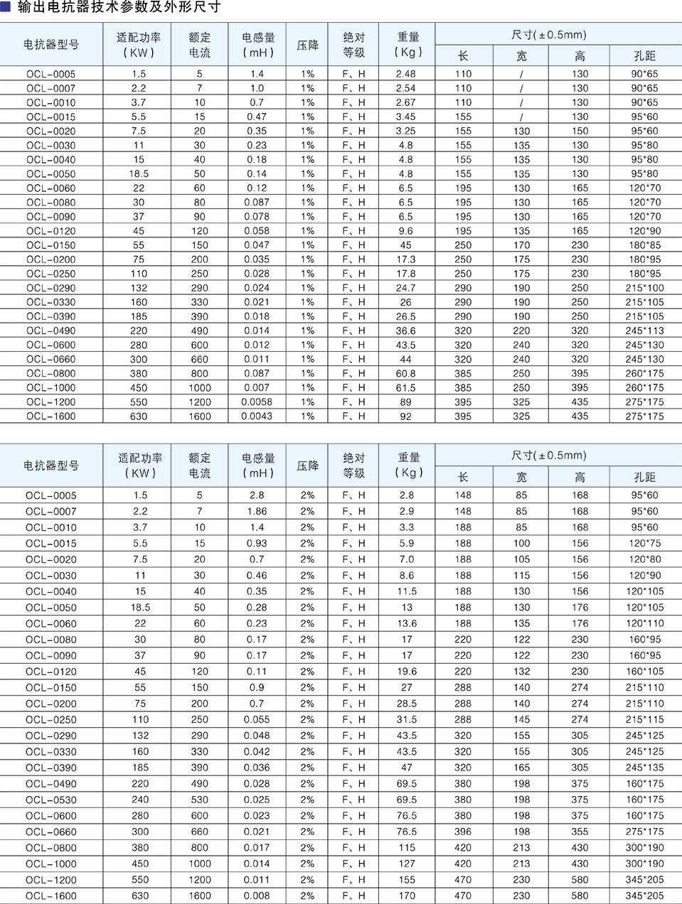 變頻器用輸出電抗器技術(shù)參數(shù)