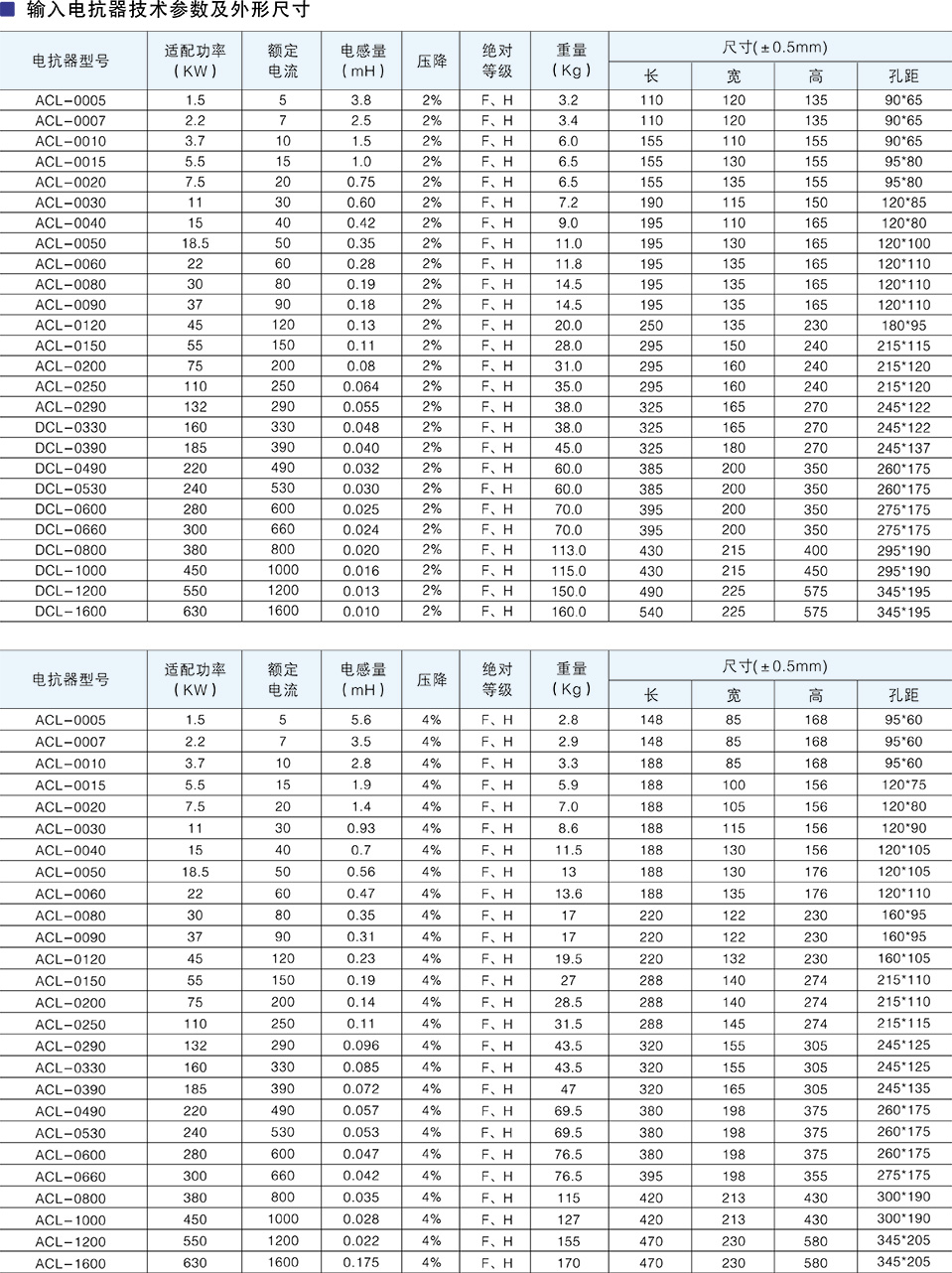 變頻器用輸入電抗器技術(shù)參數(shù)